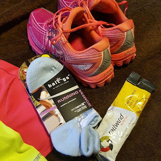 Not pictured above was my new handheld water bottle. I'm used to holding a bottle while running but the one I had was leaking, so Ronnie picked me up a new one at the store. It held 16 oz so it was a little smaller than my last one. I used half a packet of the tailwind powder as my only source of nutrition. Never having used it, I didn't want to go overboard. Note: I later read the directions (because why would I do that before the race?) and realized the ratio is 2-3 scoops per hour of endurance. I used 1 scoop for 2 hours. Lesson learned!
